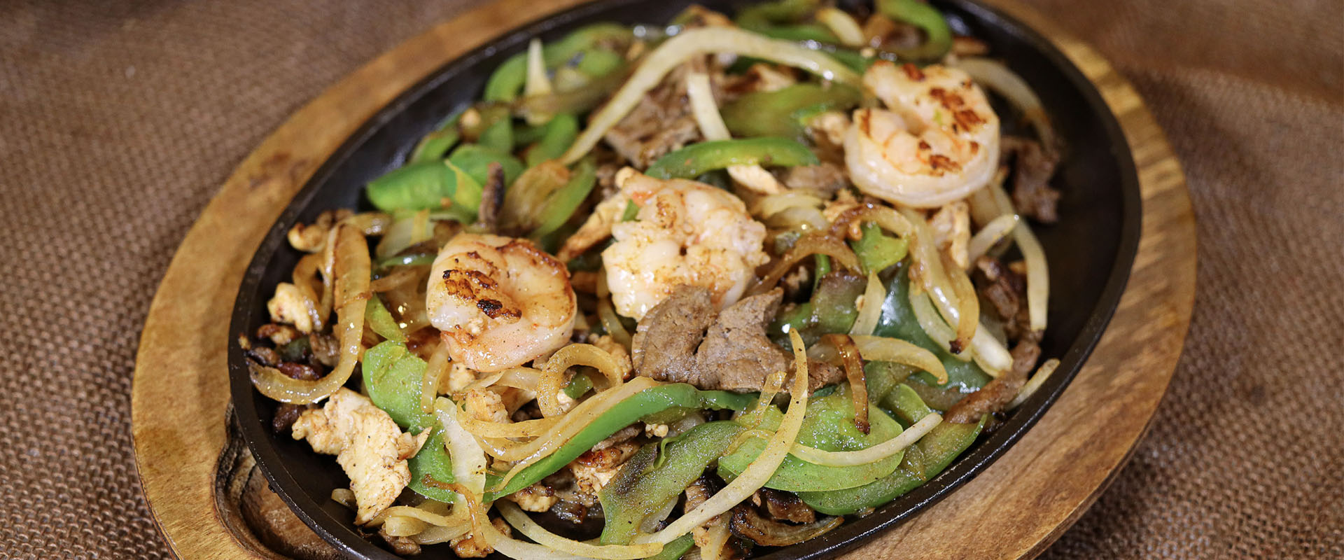 Grilled chicken and steak, sizzled up with onions and bell peppers, smothered with white cheese sauce. Chicken $14.99