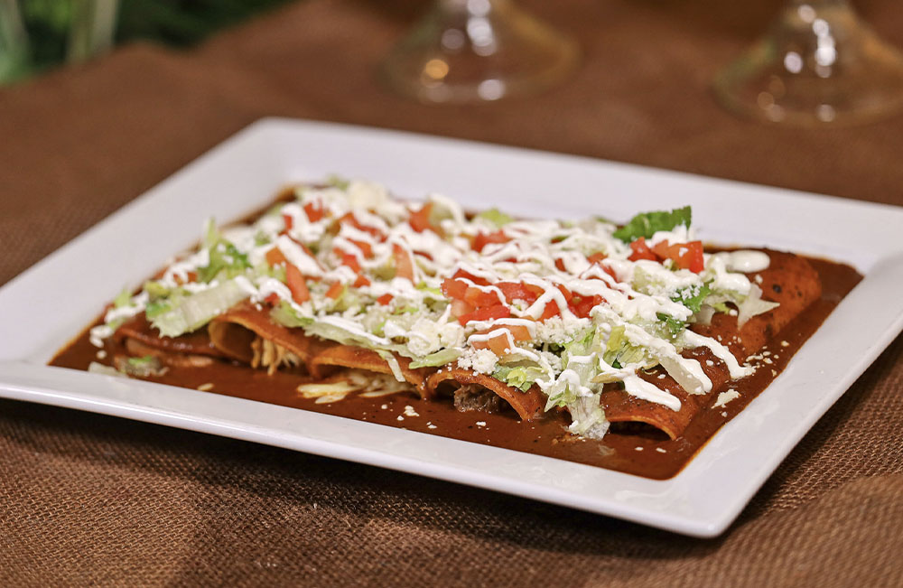 Chicken covered in our Mole Poblano. Served with rice and tortillas.